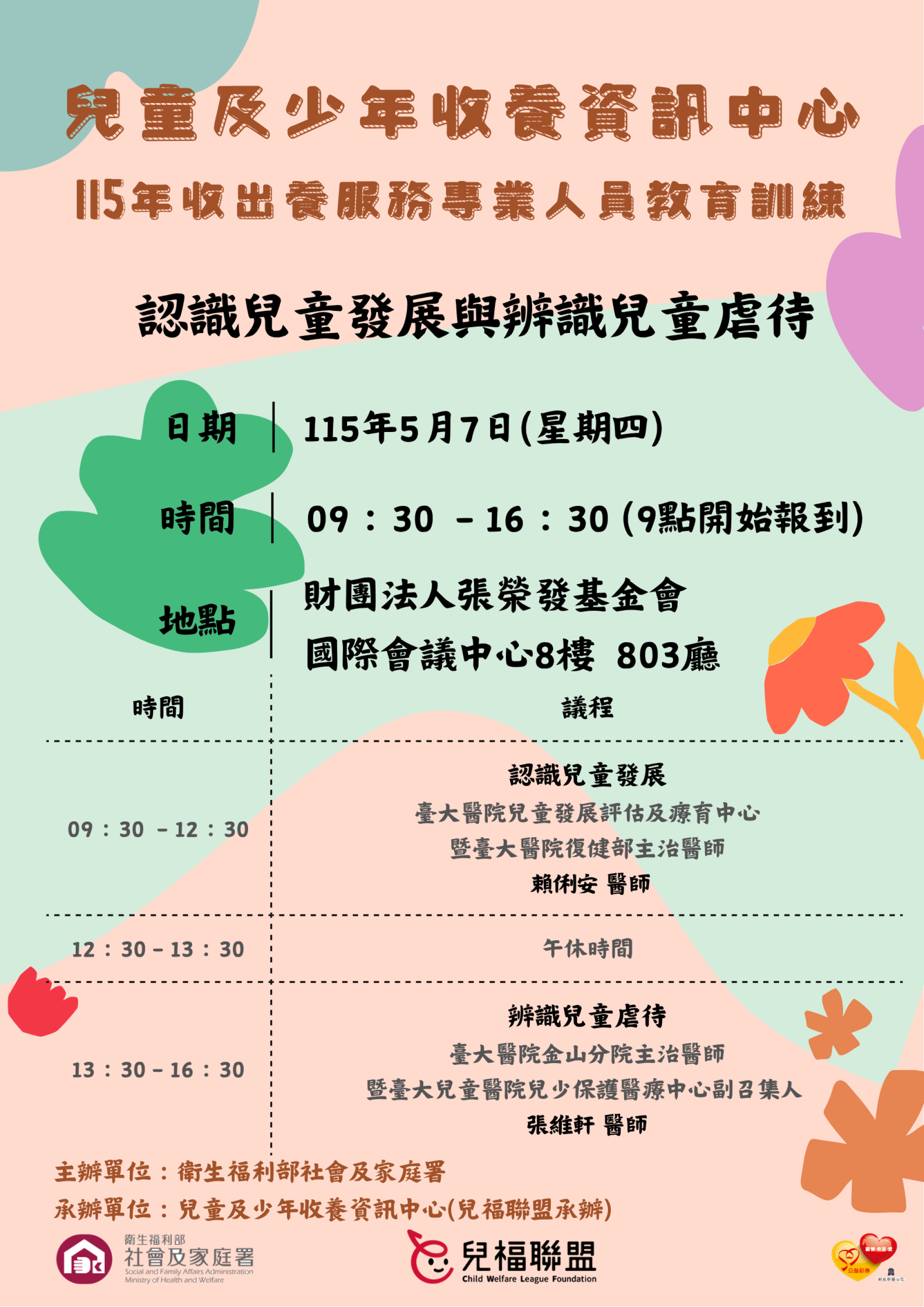 注意:此教育訓練課程如有任何調整,將於「兒童及少年收養資訊中心」網站公告,請密切注意。